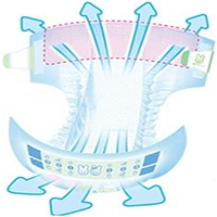Кроме того в японских подгузниках Merries (мериес размеры M, L, XL) используется специальная "дышащая" резинка с хорошей воздухопроницаемостью. "Дышащая" резинка расположена вдоль пояса подгузника и теперь малышу, который стал активно двигаться, в merries сухо и комфортно, т.к. на поясе, где быстро образуется пот, теперь стало суше. При изготовлении "Дышащей" резинки используется гибкий нетканый материал, который мягко растягивается и не сдавливает пояс Вашего малыша. "Дышащая" резинка подгузника Merries (Мериес) целый день хорошо прилегает к поясу в соответствии с движениями и дыханием ребенка, а край подгузника не врезается в животик и не вызывает покраснения.